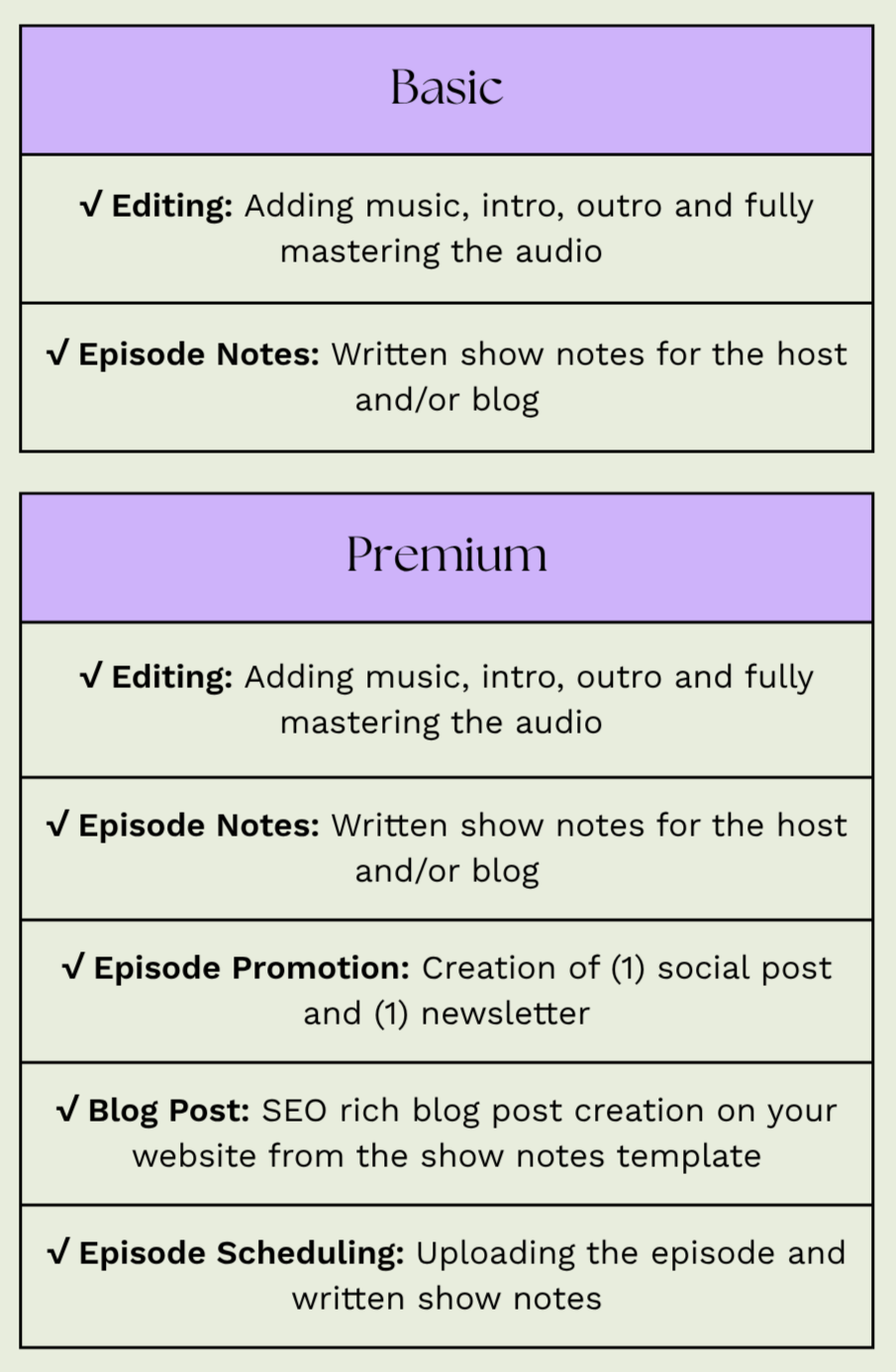 A premium podcast production service for coaches, authors, real estate agents, and entrepreneurs who want to grow their impact—without spending hours editing, uploading, and promoting every episode.
