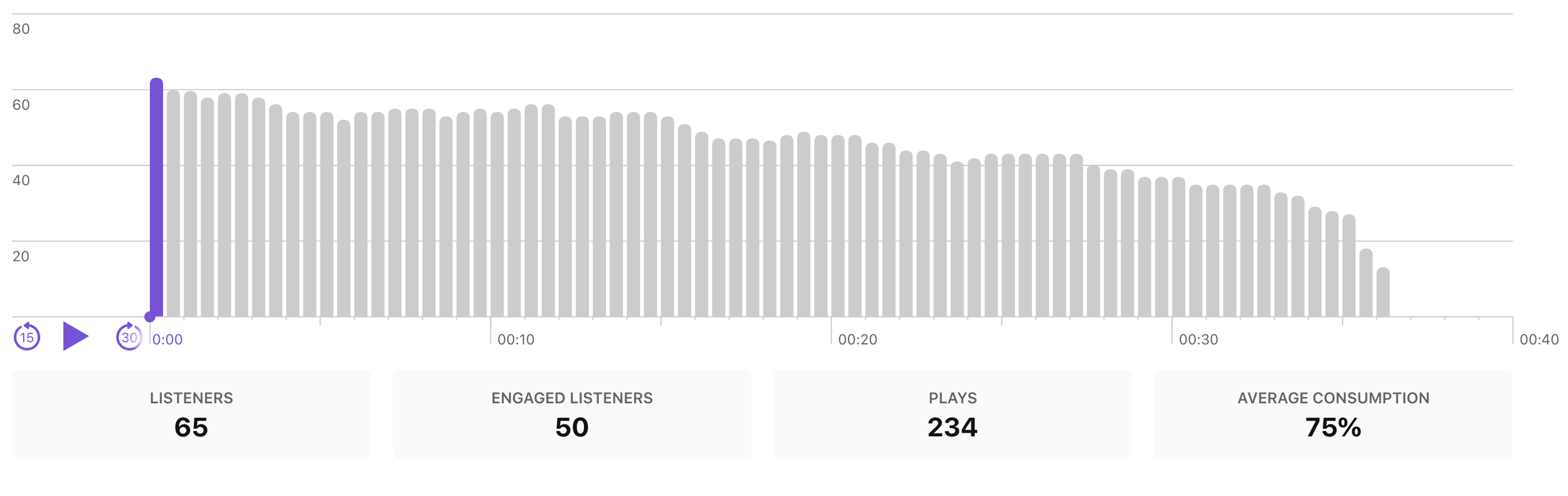 Most listeners still stay past the 30-minute mark → You have a strong, engaged audience who can support longer episodes.